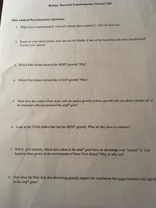 View Bacterial Transformation Virtual Lab Classzone Answer Key Pics